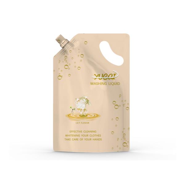 Washing Liquid Detergent Packaging Stand Up Pouch With Spouted And Handle Customized Printing